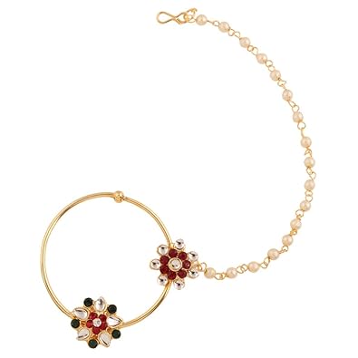 Buy Dancing Girl Nath Bridal Maroon Green Metal Alloy Pierced Nose