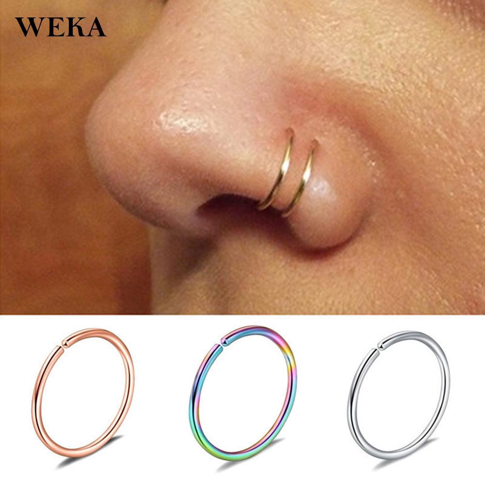 6pcs Lot 8mm Stainless Steel Nostril Fake Nose Ring Hoop Silver Gold Nose Ring For Women Men Body Piercing Jewelry