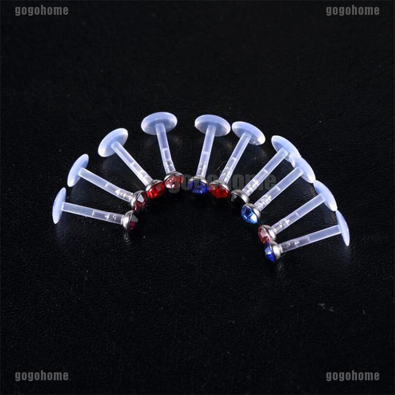 Gogohome 10x 14g Acrylic Zircon Labret Nose Rings Lip Bar Ring